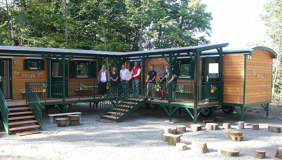 Basteln, spielen, Bücher lesen und vieles mehr können die Kinder in ihrem Aufenthaltsraum, der in einem der beiden speziellen Bauwagen am Waldrand untergebracht ist. Dort finden sich auch eine Küchenzeile, Toiletten und Dusche sowie ein gemütlicher Ruheraum mit Kissen und Bilderbüchern. „Bei Bedarf kann der Kindergarten mit einem zusätzlichen Bauwagen auch noch um eine weitere Gruppe ergänzt werden“, erzählt Blankenheims Bürgermeisterin.