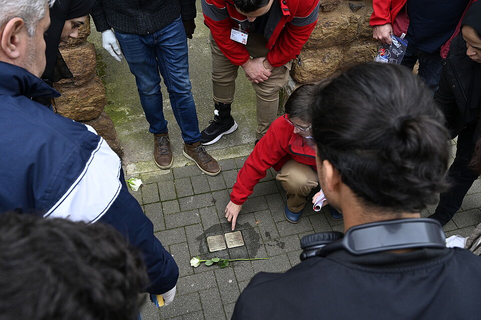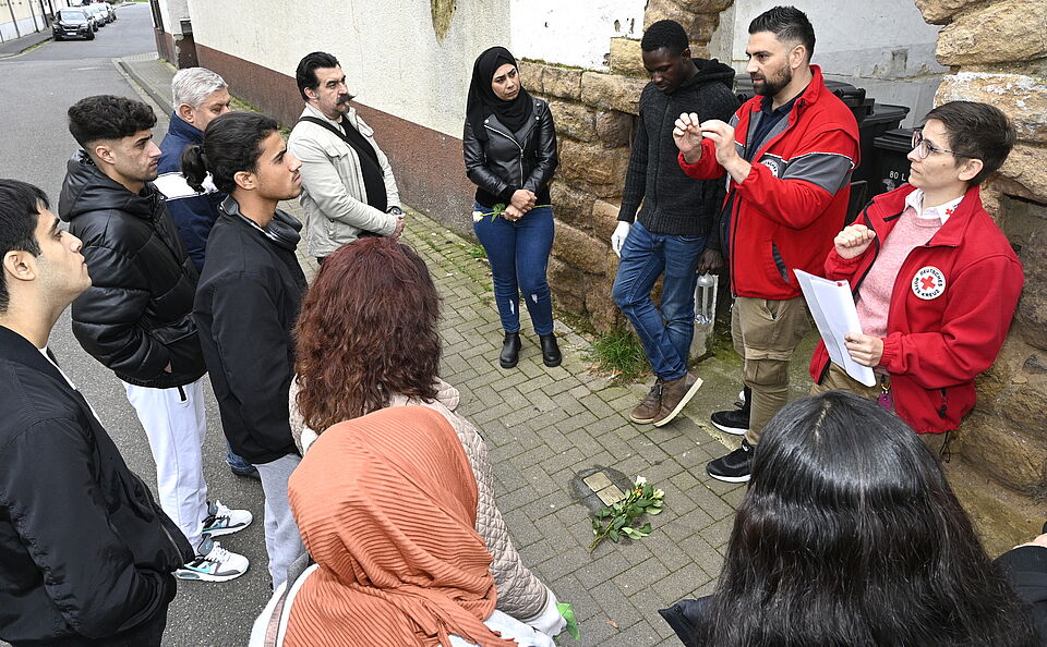 Ein besonderes Erlebnis war es, als aus dem Haus der deportierten Familie Mainzer eine interessierte Bewohnerin kam, die sich über deren Geschichte informieren wollte: „Hier haben wir eine direkte Rückkopplung erlebt“, so Weber, „denn nun konnten die Zugewanderten ihr neu gewonnenes Wissen direkt weitergeben.“ Gemeinsam mit der Gruppe besuchte sie spontan weitere Steine und zollte auch diesen Opfern des Nazi-Regimes ihren Respekt.