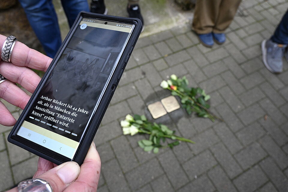 Roland Kuhlen wies zusätzlich auf die App „Stolpersteine“ des WDR hin, die die Geschichten vieler Opfer erzählt und Bilder ihrer Geschichte zeigt.