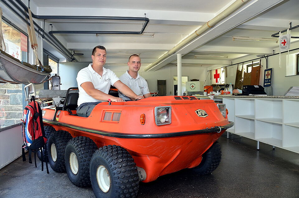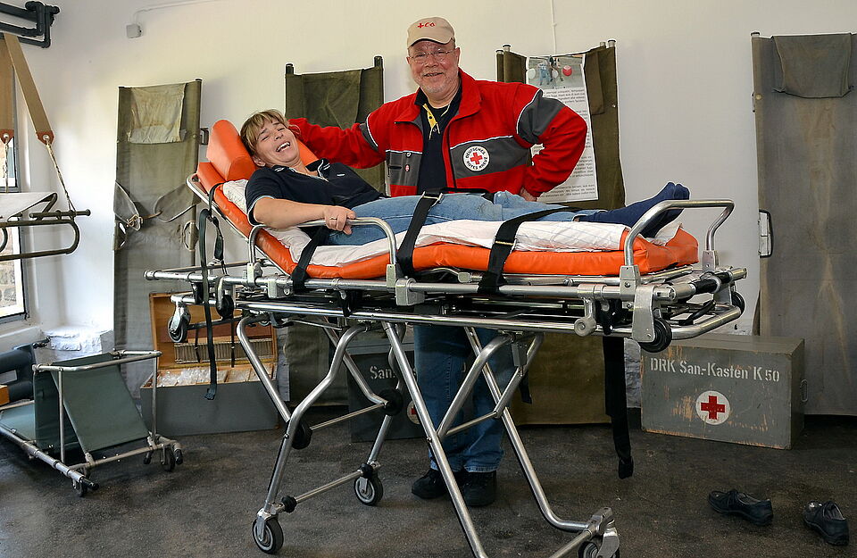 „Begrüßt“ wird man im Erdgeschoss des neuen Museums von einer Vielzahl spannender großer Ausstellungsstücke sowie dem bereits zum Start vorhandenen Museumsshop. Gezeigt werden in diesem Bereich unter anderem das Amphibien-Rettungsfahrzeug „Argo“, eine komplette Feldküche, ein historisches Kompressor-Fahrzeug aus der Zeit des zivilen Bevölkerungsschutzes, Rettungsmittel, Krankentragen und ein Feldlazarett.