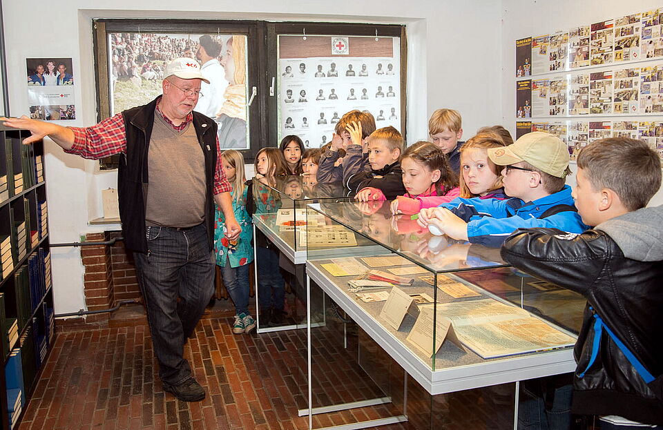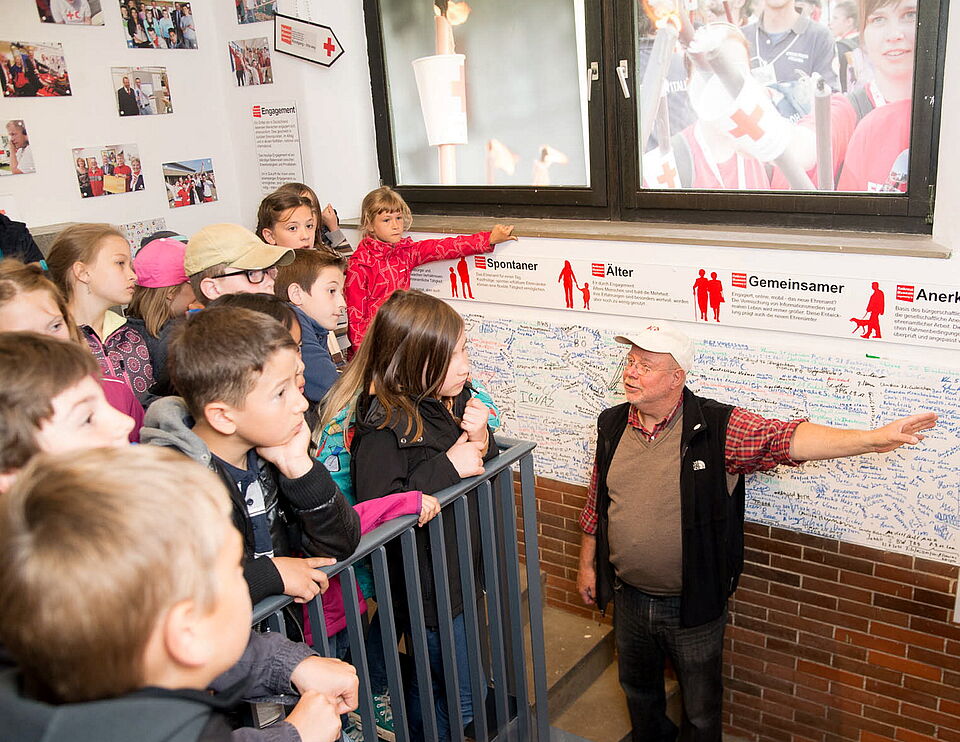„Die Kinder haben beim Verlassen des Museums ein anderes Empfinden“, sagte Ilona Raabe. Die Schüler würden merken, dass Helfen etwas bewirken kann. „Hilfe fängt bei jedem selbst an“, so Raabe. Daher sei es wichtig, die Kinder für das Thema zu sensibilisieren. Dies tat Rolf Zimmermann anhand von Beispielen, etwa nach Erdbeben oder Flutkatastrophen. „Die Intention des Museums ist: Jeder kann helfen“, sagte Rolf Zimmermann. Nicht nur das Rote Kreuz bietet sich dafür an, auch andere Rettungsdienste oder die Feuerwehr seien für die Kinder willkommene Ansprechpartner und würden sich über eine Beteiligung freuen.
