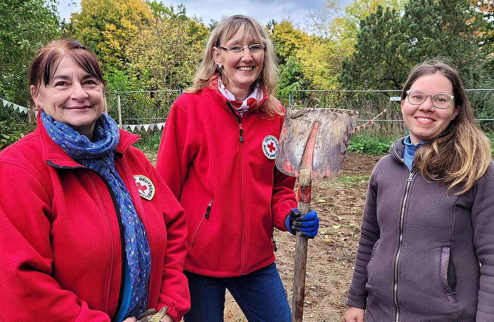 Ihr Ziel ist ein leeres Gelände neben einer Weide. Dort soll mit dem mitgebrachten Werkzeug und Material ein Familiengarten für die Kinder der DRK-Kita Kirchtal und ihre Eltern entstehen. „Wir wollen Familien für Natur begeistern und mit ihnen einen Nutz- und Entdeckungsgarten schaffen, in dem jeder willkommen ist“, erklärt Heike Iven, die Leiterin des DRK-Familienbildungswerks im Kreis Euskirchen.