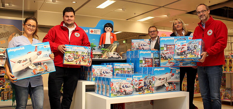 Der fränkische Spielwarenhersteller bietet eine fünfteilige Kollektion zum Thema Rotes Kreuz an: ein DRK-Mega-Set, einen DRK-Gerätewagen, ein DRK-Rettungsflugzeug, einen DRK-Rettungswagen und ein DRK-Versorgungszelt mit Notarzt-Einsatzfahrzeug. Selbstverständlich wird es diese Kollektion, an der nicht nur Kinder, sondern auch Erwachsene Spaß haben, am Aktionstag anbieten. Die Kollektion war übrigens schon einmal vorhanden und am ersten Tag bereits vergriffen, sodass Playmobil mittlerweile nachgeliefert hat.