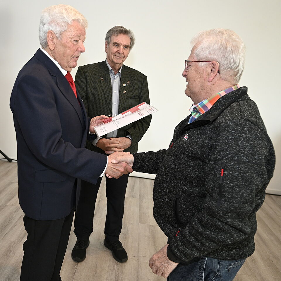 Ausgezeichnet für 75 Spenden wurde Manfred Koch. Rudolf Kortenbruck war leider verhindert. Für diese beeindruckende Zahl gab es sogar einen Präsentkorb mit verschiedenen Leckereien dazu. Größer wurde der Korb bei Hubert Schüler, der ganze 100 Blutspenden geleistet hatte.