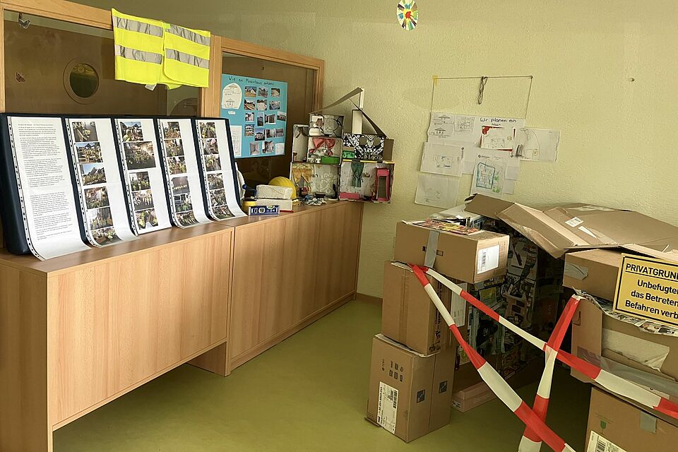 „Angefangen haben wir mit Bürotätigkeiten“, berichtet die Kita-Leiterin. Zum Thema gab es für die Drei- bis Sechsjährigen einen Ausflug ins Rotkreuz-Zentrum nach Euskirchen. Dort zeigte Heike Iven, Leiterin der DRK-Familienbildung, den Kindern die Räumlichkeiten. Auch DRK-Kreisgeschäftsführer Rolf Klöcker sowie sein Stellvertreter und Kita-Bereichsleiter Ralf Krutwig öffneten gerne ihre Büros für die kleinen Besucherinnen und Besucher, die zudem von zwei Rotkreuz-Rettern gezeigt bekamen, wie Erste Hilfe funktioniert.