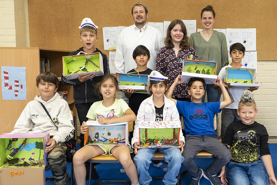 So passte es, dass am letzten Tag Basteln auf dem Programm stand. Denn die Kinder durften mit Schuhkartons, Papier, Stickern und Knete Tierwelten entwerfen. Ihr Lieblingstier, das sie zuvor im Wildpark gesehen hatten, durften sie auch verwirklichen – und ganz nebenbei wurden sie dann auch noch fit in Deutsch.