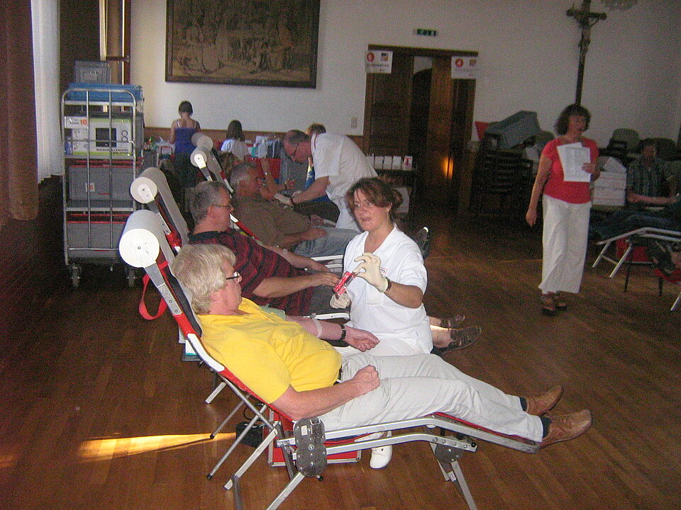 Bad Münstereifel - Das St.Josefs-Haus in Bad Münstereifel bietet seit langer Zeit ein ganz besonderes Ambiente. Alle 3 Monate findet hier ein Blutspendetermin statt, organisiert durch die ehrenamtlichen Helfer des Ortsvereins Bad Münstereifel. Doch nicht nur der Ort zieht neue Spender an, denn ein üppiges Buffet steht für jeden bereit. "Wer einmal nach Bad Münstereifel zum Blutspenden kommt, den wird man so schnell nicht mehr los." ,berichtete mir ein Spender.