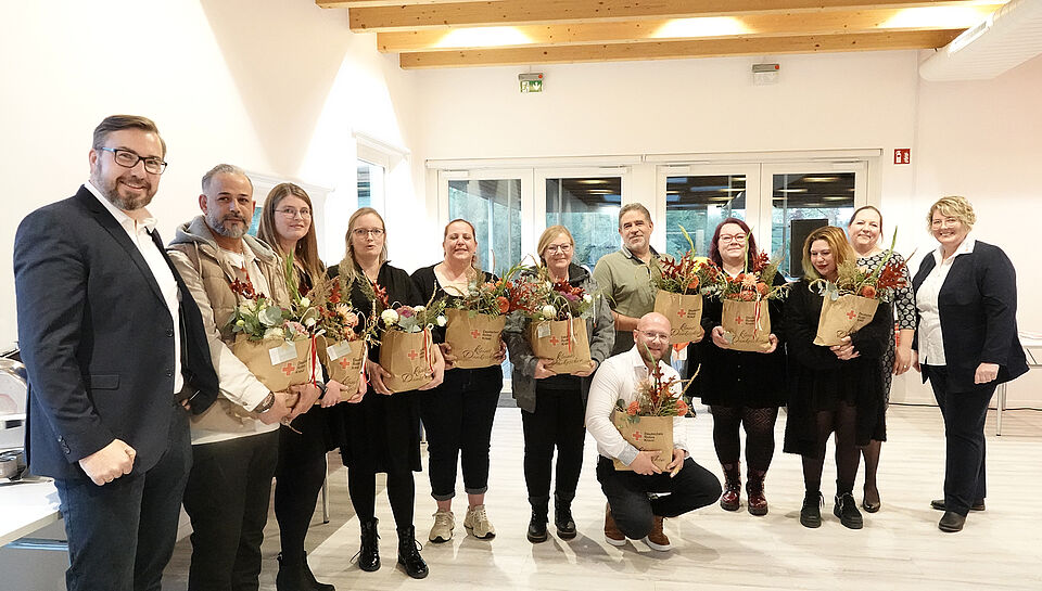 Zülpich/Euskirchen – Mit einer strahlenden Feier im Zülpicher Seehaus beging die „Zentrale Unterbringungseinrichtung Euskirchen“ (ZUE) des DRK-Kreisverbandes im Oktober ihr zehnjähriges Jubiläum in der Geflüchteten-Hilfe. Rund einhundert Kolleginnen und Kollegen waren gekommen, darunter auch viele Ehemalige und Thomas Moll, der erste Betreuungsdienstleiter. So gab es „manch freudiges und auch überraschendes Wiedersehen“, berichtete Andreas Züll, der als Moderator durch den Abend führte: „Es sollte ein rundum gelungenes Fest werden!“
