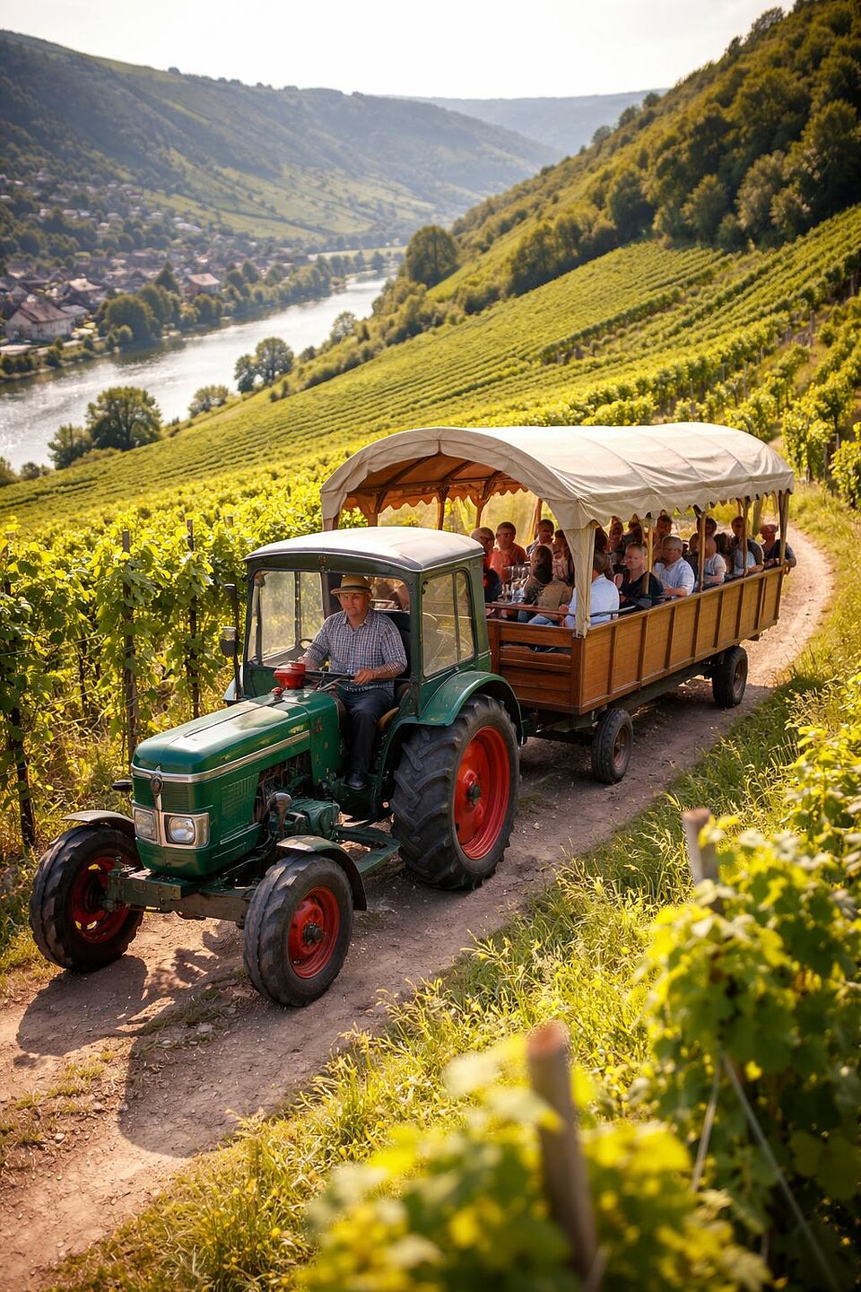 Die Teilnehmenden erwartet ein abwechslungsreicher Tag: Mit dem Planwagen geht es gemütlich durch die Moselweinberge, inklusive Weinverkostung, regionaler Küche und Zeit zum Entdecken. Während der Fahrt werden ausgewählte Weine aus den jeweiligen Lagen verkostet und es gibt interessante Einblicke in die Vielfalt und Qualität der Moselregion.
