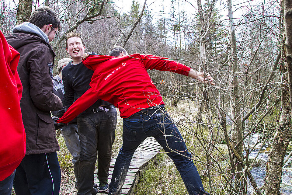 Bild DRK JS | Ein elektrischer Draht gehörte zu den Hindernissen, die es gemeinsam zu überwinden galt.
