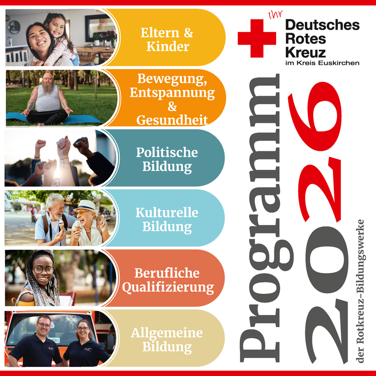 Unsere Rotkreuz-Bildungswerke freuen sich über vielfältige und spannende Veranstaltungen und Kurse in den Bereichen: