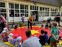 Schleiden | Kinder flutbetroffener DRK-Kitas begeisterten als Artisten, Indianer, Clowns und mehr – „Projektcircus Klecks“ übte mit ihnen, „Peine hilft Gemünd“ machte es möglich – Viele Acts und…